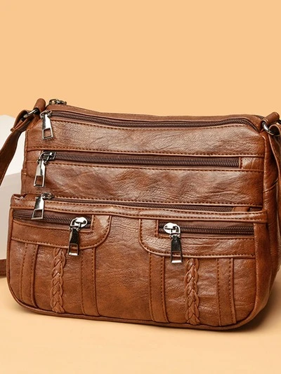 1pc Vintage Large Capacity Casual Versatile Zipper Pocket Women's Elegant Elegant Adjustable Strap Shoulder Crossbody Handbag, High-Quality Material Suitable For Office Ladies, College Students, Daily Commute