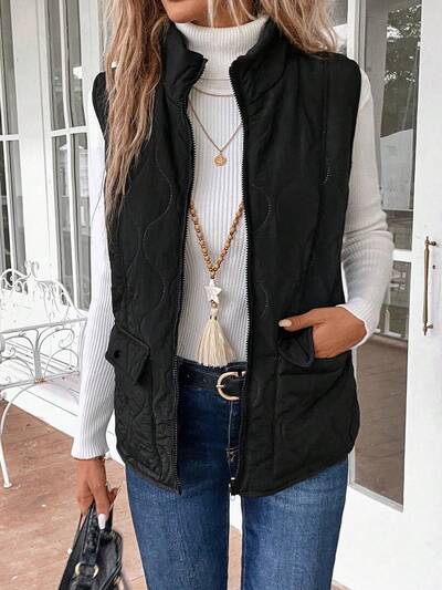 Women's Solid Color Stand Collar Zip Front Sleeveless Casual Padded Coat For Winter-45%