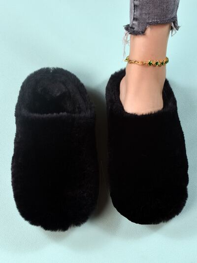 Fall/Winter Black Minimalist Fuzzy Bedroom Slippers,Fluffy Slippers-32%