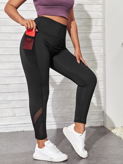 Plus Size Contrast Mesh Sports Leggings With Phone Pocket Yoga Women Pants-51%
