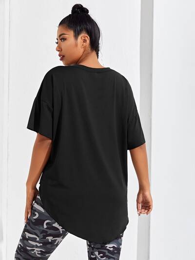 Plus Solid Drop Shoulder Sports Tee Gym Women Shirts-50%