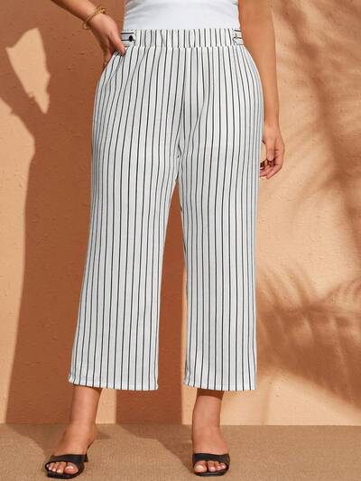 Plus Size Striped Print Elegant Straight Leg Pants, Suitable For Spring-42%