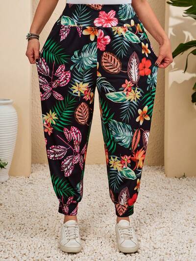 Plus Size Women Tropical Plant Print Casual Drawstring Pants Floral Pants Women Flower Pants Women Summer Pants Summer Outfits Summer Clothes Spring Spring Outfit Women Spring Clothes Beach Vacation Outfits For Women Bohemian-28%