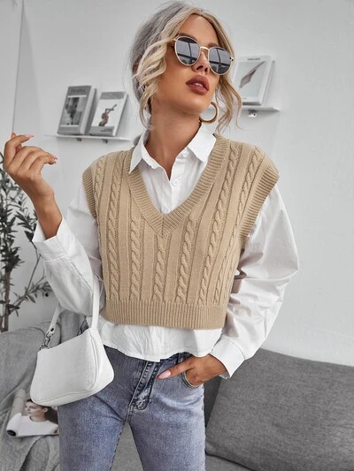 Cable Knit V-neck Sweater Vest