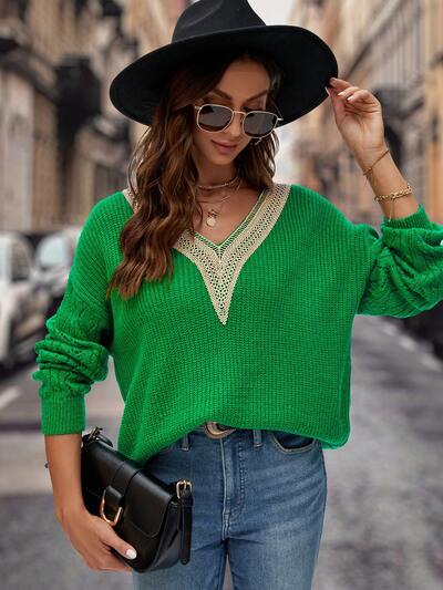 Guipure Lace Panel Drop Shoulder Sweater-60%