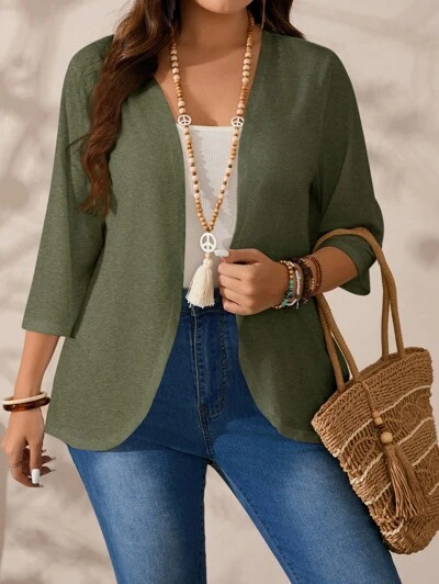 Plus Size Vacation Casual Solid Color Teacher Fall Jacket