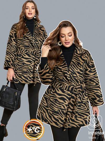 Plus Size Women Zebra Print Long Sleeve Knitted Thermal Jacket, Winter