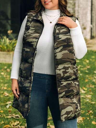 Camouflage Design Plus Size Sleeveless Winter Vest For Women-60%