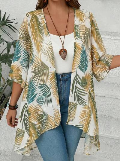 Plus Size Floral Print Casual Vacation Jacket/Summer Plus Size Boho Clothes Boho Kimono Western Wear Women Outfit Summer Outfits Beach Outfit For Women Summer Holiday Outfits Casual Outfit For Women Going Out Tops