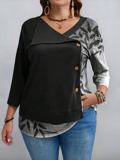 Plus Size Paisley Pattern Button Up Casual T-Shirt-48%