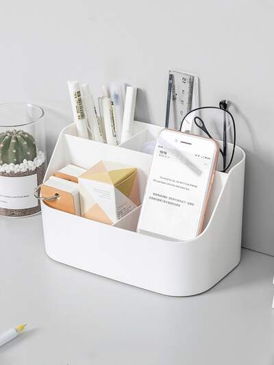 1pc Multifunction Plastic Desktop Storage Box, Solid Table Organizer For School Stationery, Office Supplies, Skincare Tools-15%
