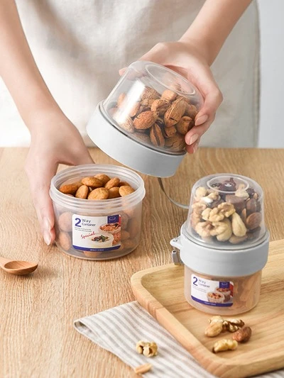 1pc Double Layer Sealed Transparent Fresh-Keeping Box For Breakfast, Fruit, Milk And Food Storage (150ml+150ml)-33%