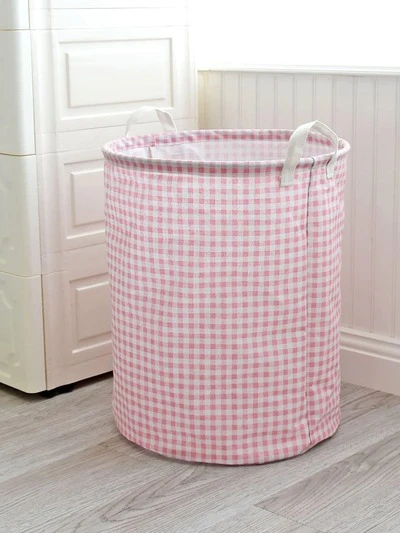 1pc Gingham Pattern Storage Basket Dress Pants Shoes Jeans Boots Skirt Laundry Hamper, Washing Basket Bathroom Organizer, Basket, Storage Basket, Foldable Laundry Basket-33%