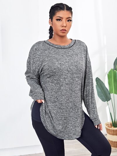 Plus Size Space Dye Drop Shoulder Sports Long Sleeve Tee