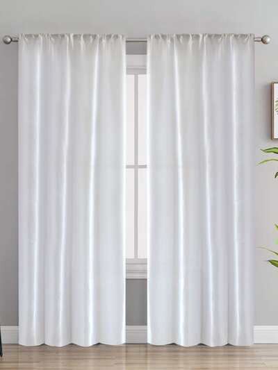 1pc Half-shading Modern Simple Plain Finished Curtain With Satin Underlayer