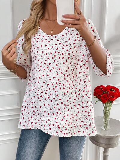Women's Heart Print V-Neck 3/4 Sleeve Loose Shirt Valentine's Day-32%