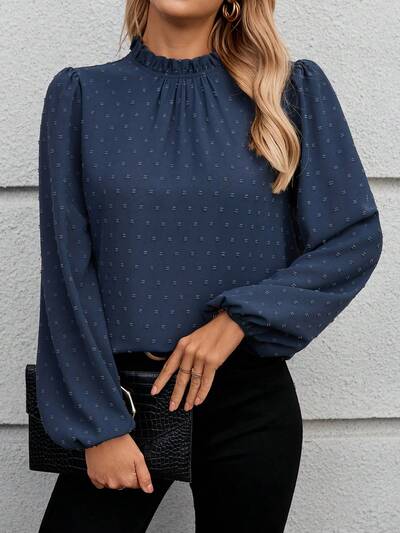 Women's Solid Color Stand Collar Ruffled Long Sleeve Shirt-46%
