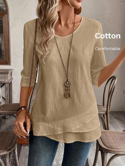 Women's Elegant Commuter Style Round Neck Long Sleeve Shirt-33%