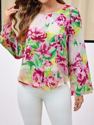 Women Floral All Over Print Round Neck Long Sleeve Top, Casual Daily Wear-60%