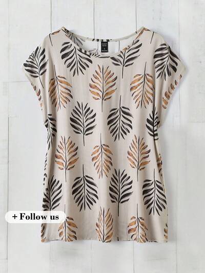 Women's Tropical Plant Print Bat-Wing Sleeve Blouse For Vacation-60%