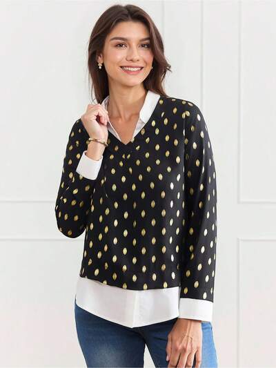 Country Concert Women's 2 In 1 Splicing Long Sleeve Simple Shirt, Casual Everyday Wear-55%