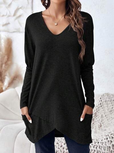 Women's Casual Solid Color Button Back Curved Hem T-Shirt Women Long Sleeve Tops Grey Tops For Women Gray Blouse Women Solid Color T Shirt Tops Women Women Women's Fall Clothes