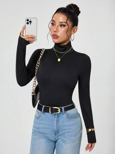 High Neck Slim Fit Basic Tee Fall Cloth For Women-46%
