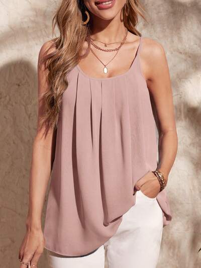 Solid Plicated Detail Cami Top-46%