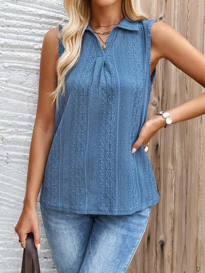 Women's Summer Solid Color Collar Turn-Down Loose Casual Tank Top Collared Shirt-32%
