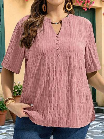 Plus Size Summer Casual Solid Color Notched Neck Shirt