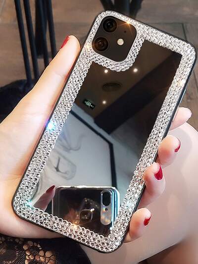 Luxury Mirror Element Basic Phone Cases Rhinestone Trimmed Mirror Protective Case Compatible With IPhone 17 Pro Max 15 Plus Birthday Gift Spring Wedding Anniversary
