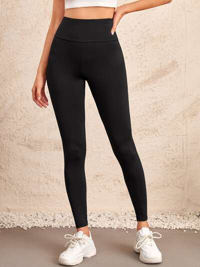 Women's High Waist Solid Color Casual Leggings, Versatile For Daily Wear & Workout