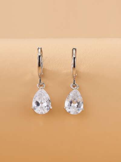 1 Pair Elegant Luxury Red Geometry Square Crystal Gem Dangle Earrings, Fashion Accessory For Party