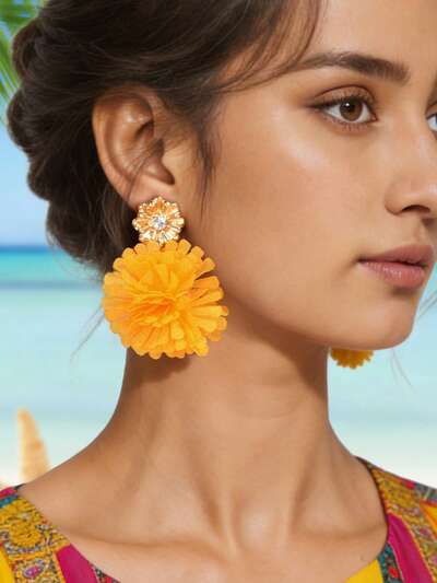 Fabric Flower Charm Drop Earrings Valentines,Mom,Mother,Mother's Day,Gift