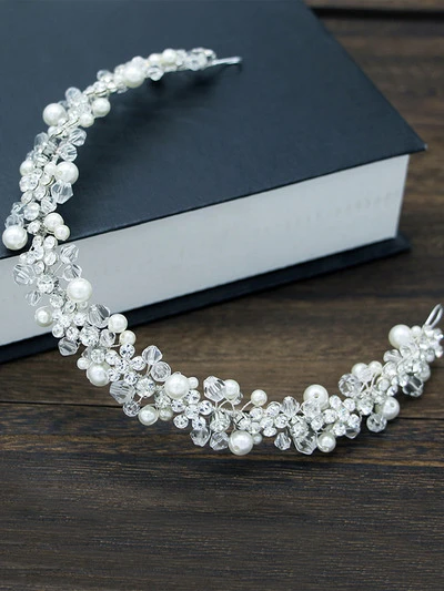 1pc Women's Elegant Handmade Alloy Pearl Crystal Soft Chain Headband, Bridal Wedding Hair Accessory Valentine's Day Accessories