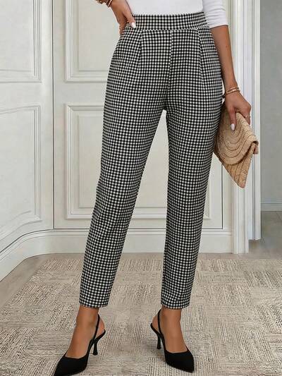 Women's Fashionable Commuter Black And White Plaid Pants Women's Pants Elegant Pants For Women Winter Women Pants Fall Pants Stylish Women's Pants Plaid