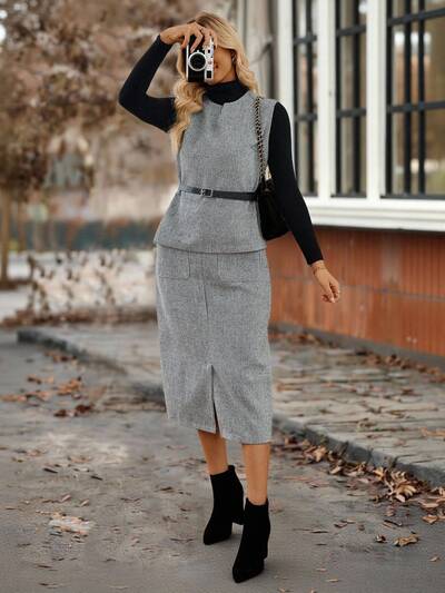 Women's Elegant Commuter Vest & Skirt 2 Pieces Set Tweed Two Piece Set Two Piece Set Women Skirt Work Dress For Office Fall Clothes For Women Office Outfits For Women Fall Outfits
