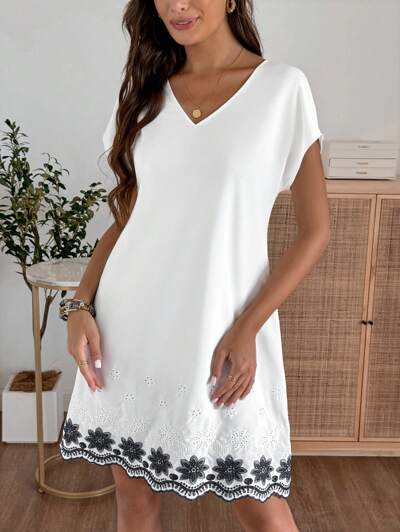 Women's Summer Embroidered V-Neck Hollow Out Dress Summer Dresses For Women White Dress Vacation Dress
