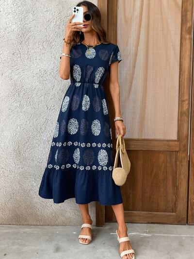 Women's Floral Print V-Neck Cap Sleeve Ruffle Hem Casual Vacation Dress,Sun Dresses For Women