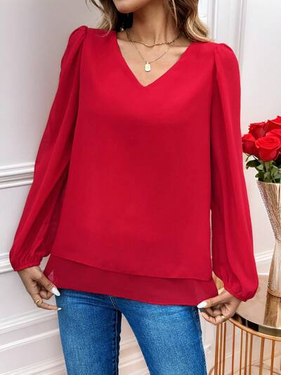 Women's Elegant Commuter Style Blue V-Neck Long Sleeve Shirt