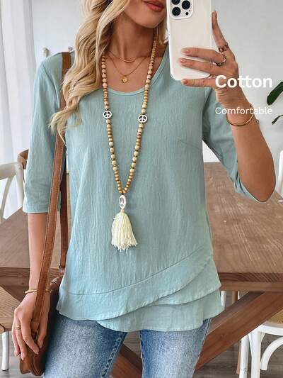 Women's Double Layer Ruffle Trim Short Sleeve T-Shirt-60%
