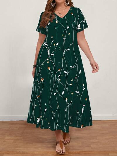 Plus Size Casual Plant Print Summer Women's Dress-49%