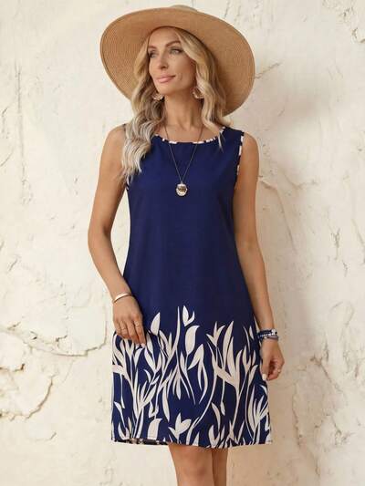 Women's Plant Printed Patchwork Sleeveless Dress-30%