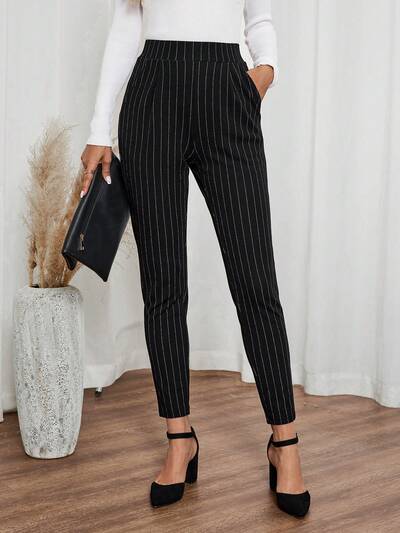Women's Black Striped Pocket Skinny Casual Pants Dress Pants Fall Pants-41%
