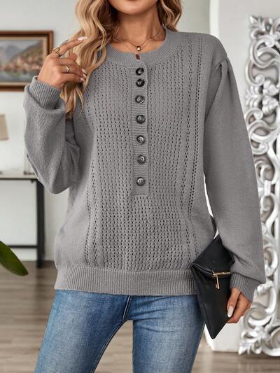 Women's Solid Crew Neck Button Front Drop Shoulder Casual Sweater Fall Women Sweaters Winter Women Clothes-60%