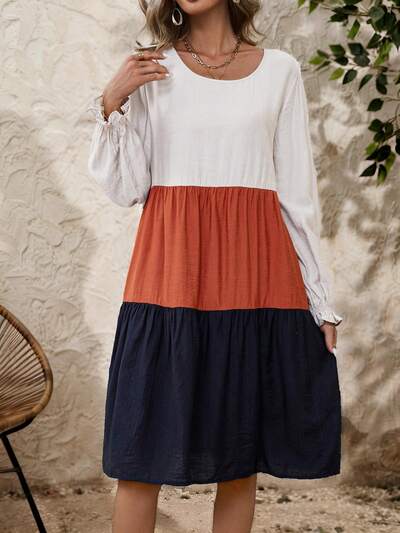 Fall DressesWomen's Casual Random Print Ruffle Sleeve Dress, Spring & Fall-60%