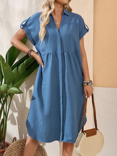 Women's Notched V-Neck Batwing Sleeve Solid Color Summer Dress Casual Dress Teacher Clothes Blue Dress-26%