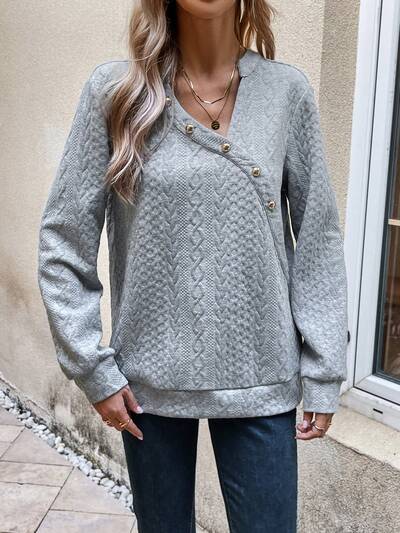 Women's Solid Color Asymmetric Neck Button Detail Sweatshirt-65%