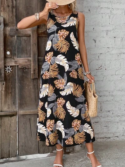 Tropical Print Tank Dress Without Belt