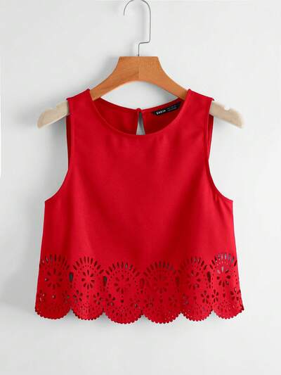 Laser Cut Scallop Trim Tank Top,Casual